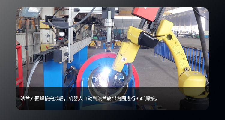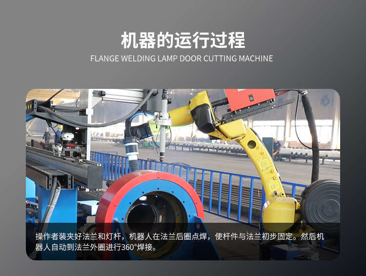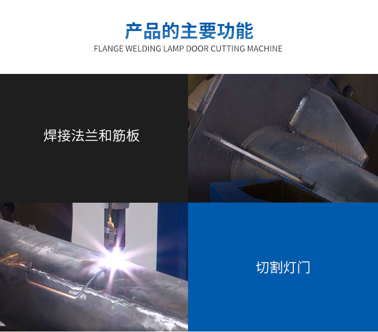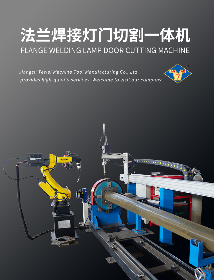 全自動法蘭焊接燈門切割一體機可以實現從法蘭里外焊接,加強筋板的安裝和焊接,燈門切割全部一次完成,減少了桿件