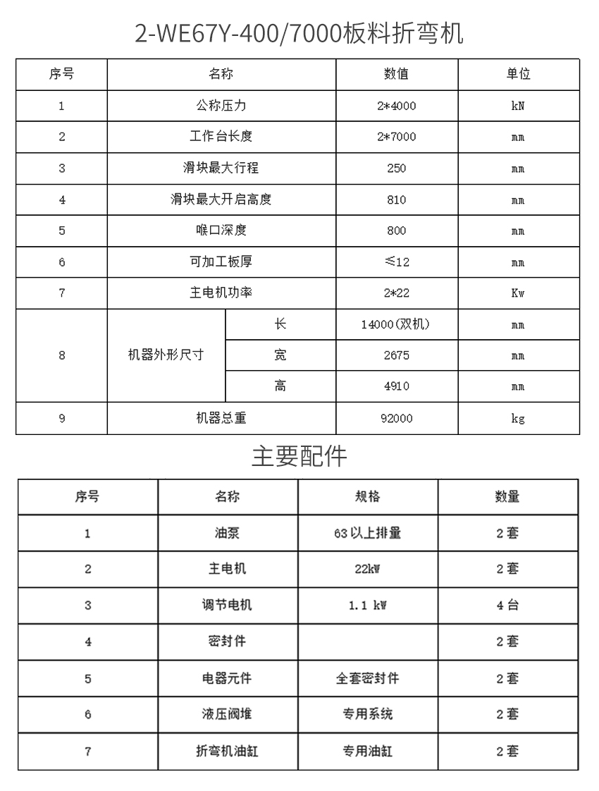 該設備由兩臺折彎機組成,雙機聯動實現同步工作.單機由工作臺滑塊以及左右墻板組成,墻板由于設備運輸原因,采用拼裝式結構,機架具有足夠的剛性,兩只油缸分別裝在左右墻板上,由液壓系統在電器操作系統的作用下,驅動滑塊下行,滑塊上裝有上模,當上下模接觸工件后,系統升壓,使工件成型,使用不同的模具,可以在不同的折彎方式下,得到不同形狀的工件.質量穩定可靠